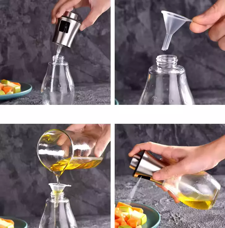 Γυάλινο δοχείο λαδιού με μηχανισμό ψεκασμού για να μπορείτε να ελέγχετε την ποσότητα που θέλετε να βάλετε στο φαγητό σας.