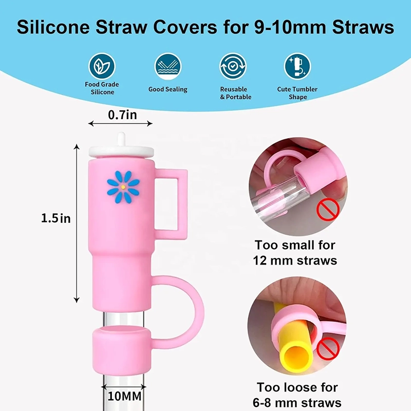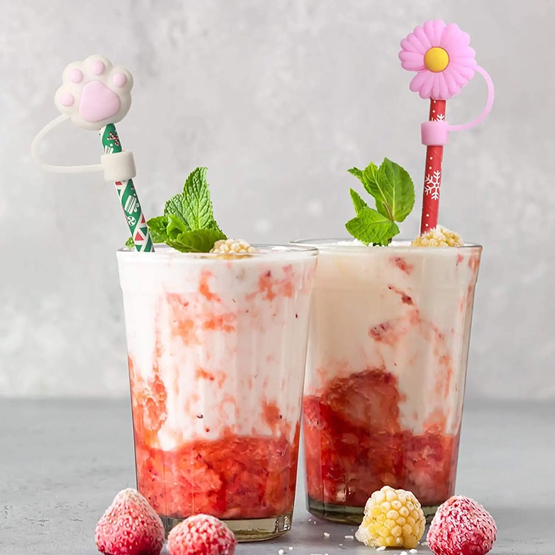 Κάλυμμα σιλικόνης για το ανοξείδωτο ή το πλαστικό καλαμάκι, για να μην είναι εκτεθειμένο και να μην υπάρχουν διαρροές. Διατίθεται σε τρία σχέδια, πατούσα, φράουλα και μίνι ποτήρι καφέ.