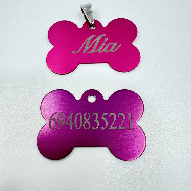 - Η χάραξη μπορεί να γίνει και στις δύο όψεις της ταυτότητας, π.χ μπροστά το όνομα του σκύλου και πίσω το τηλέφωνο σας.