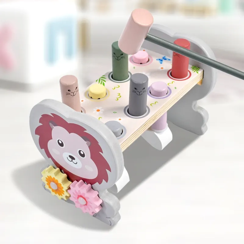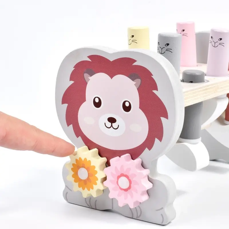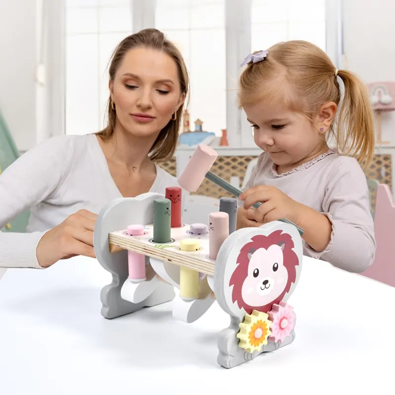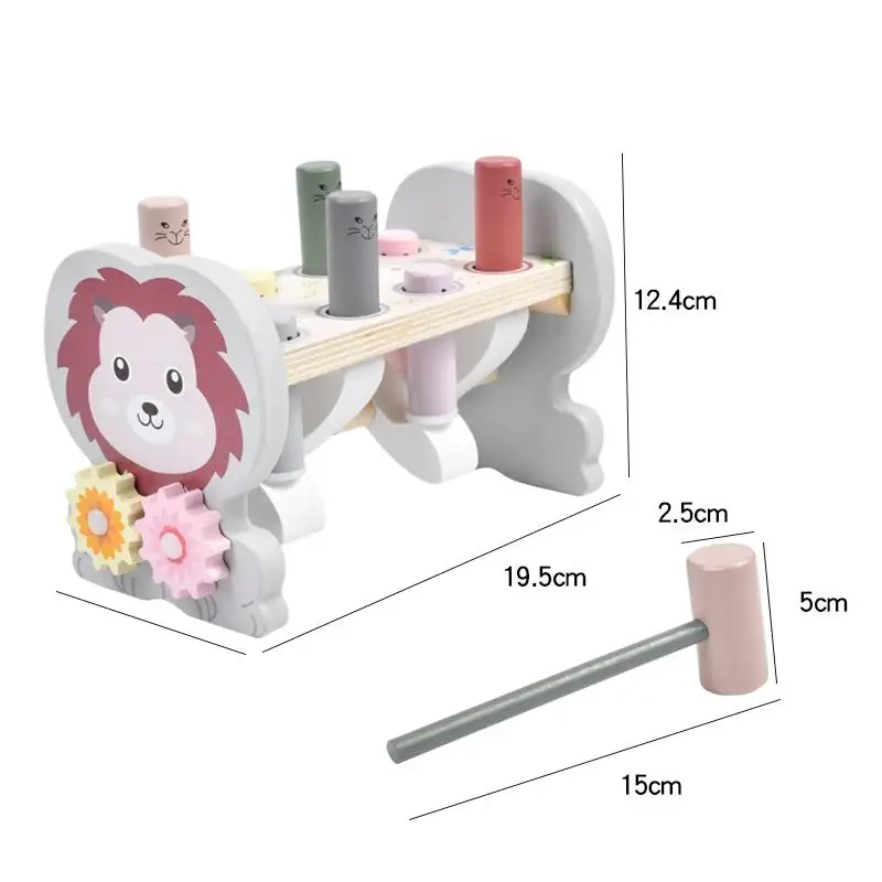 Παιχνίδι με σφυράκι λιονταράκι. Κατασκευασμένο από φυσικά οικολογικά υλικά και βαμμένο με μη τοξικά χρώματα με βάση το νερό, με καλά γυαλισμένες επιφάνειες, ασφαλές για το παιδί σας.