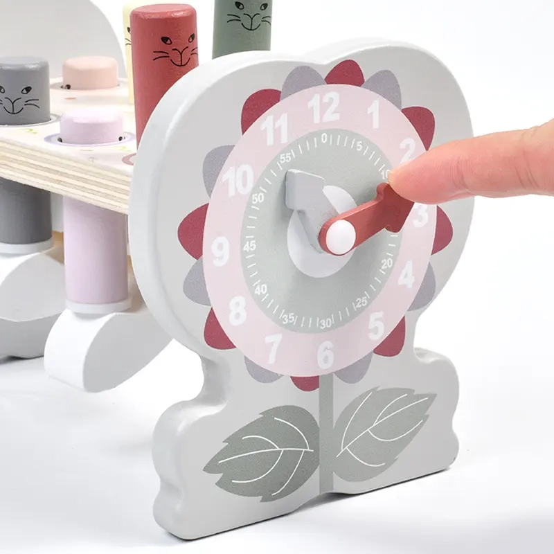 Μαθαίνουν τα χρώματα, συντονίζουν τα χέρια με τα μάτια και αντιλαμβάνονται το αποτέλεσμα του χτυπήματος με το σφυρί, εξασκούν τη λεπτή του κινητικότητα με τις περιστροφές. Τέλος, είναι ένα παιχνίδι με το οποίο το παιδί μπορεί να έρθει σε επαφή με την «ώρα» (χρονικός προσανατολισμός), και τους αριθμούς.