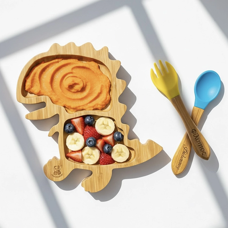 Πιατάκι μπαμπού με βεντούζα Δεινόσαυρος με 2 χωρίσματα