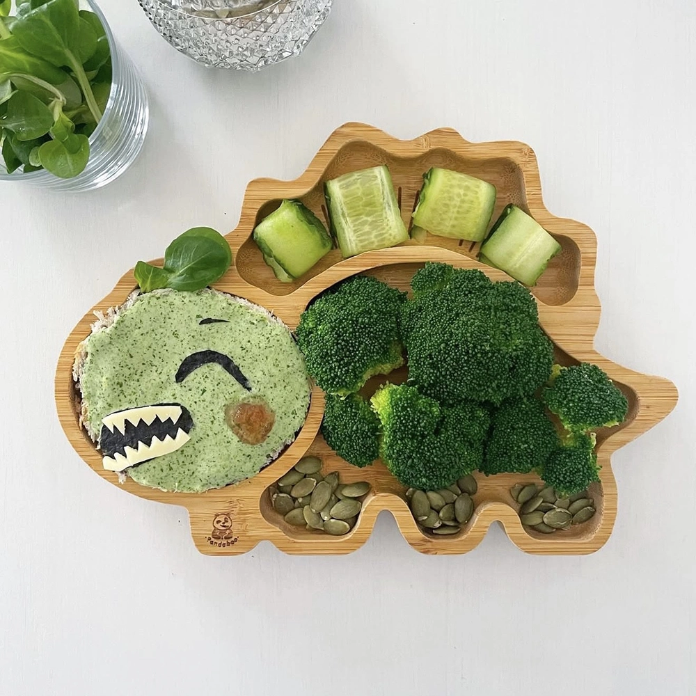 Πιατάκι μπαμπού με βεντούζα στήριξης Δεινόσαυρος ΙI. Χωρισμένο σε τρία μεγάλα μέρη . Αφήστε το παιδί σας να φάει μόνο του, να εξερευνήσει και να παίξει με το φαγητό του. Είναι ιδανικό για τη μέθοδο αυτοσίτισης baby-led weaning αλλά όχι μόνο.