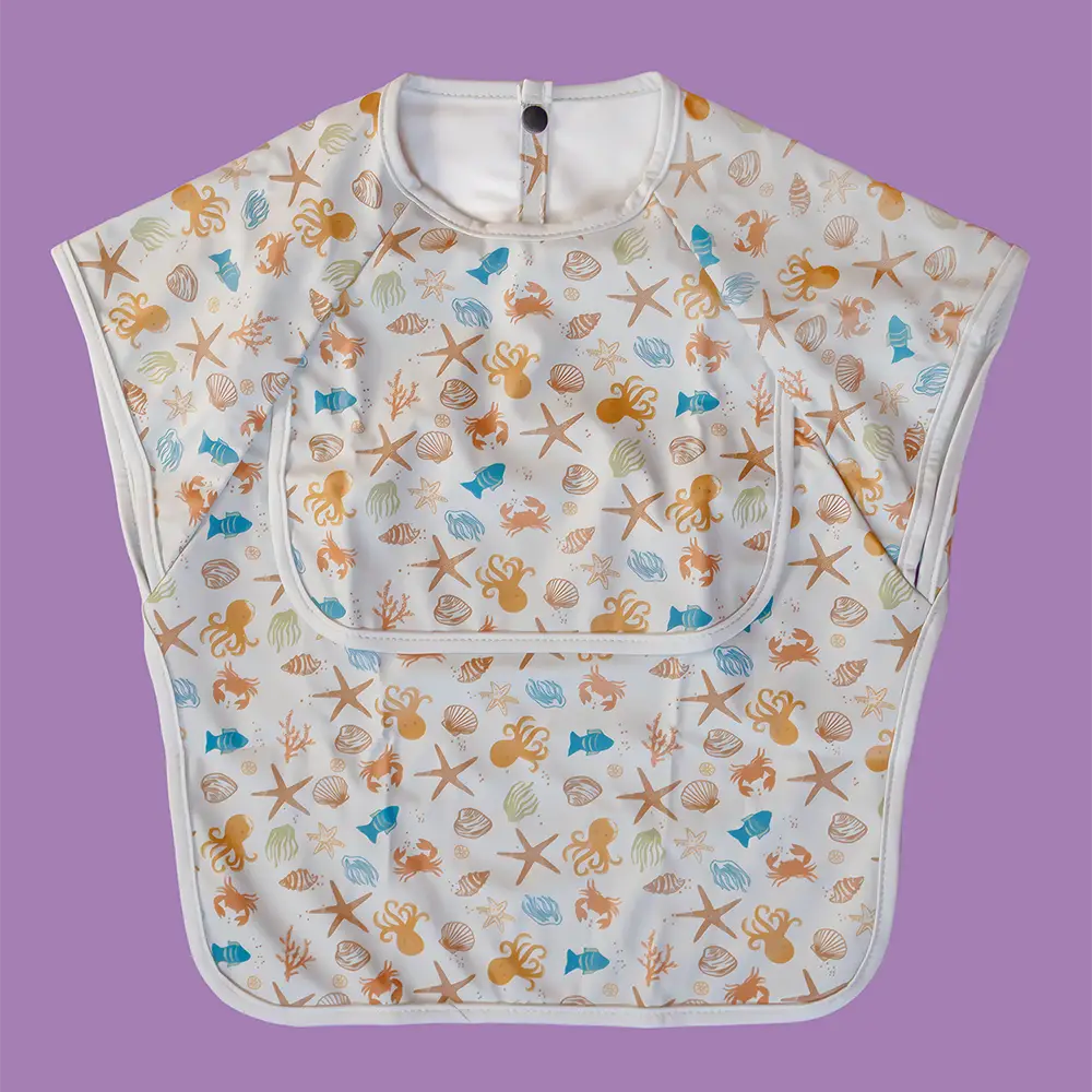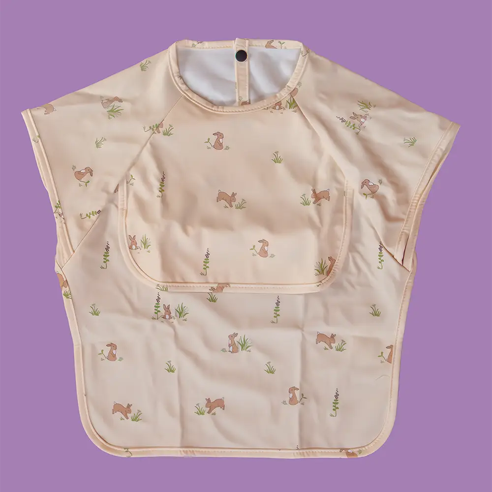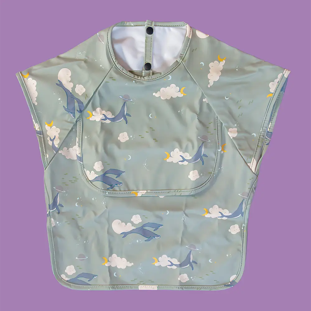 Σαλιάρα αμάνικη από πολυεστέρα. Κρατάει το παιδί καθαρό την ώρα που τρώει και με το τσεπάκι συγκρατεί τροφές που μπορούμε να τις ξαναπροσφέρουμε ή ακόμη και να τις πάρει μόνο του.