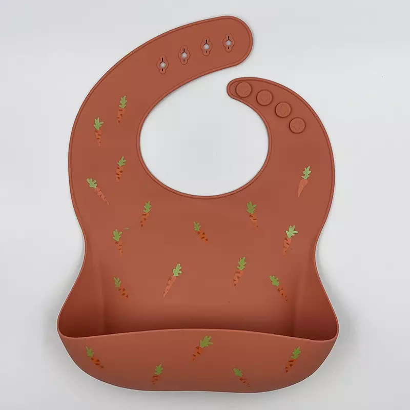 Σαλιάρα σιλικόνης με τσεπάκι και τύπωμα καρότο.