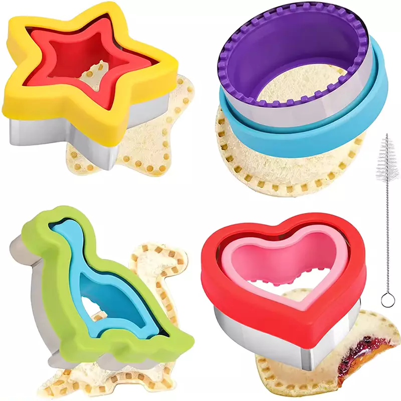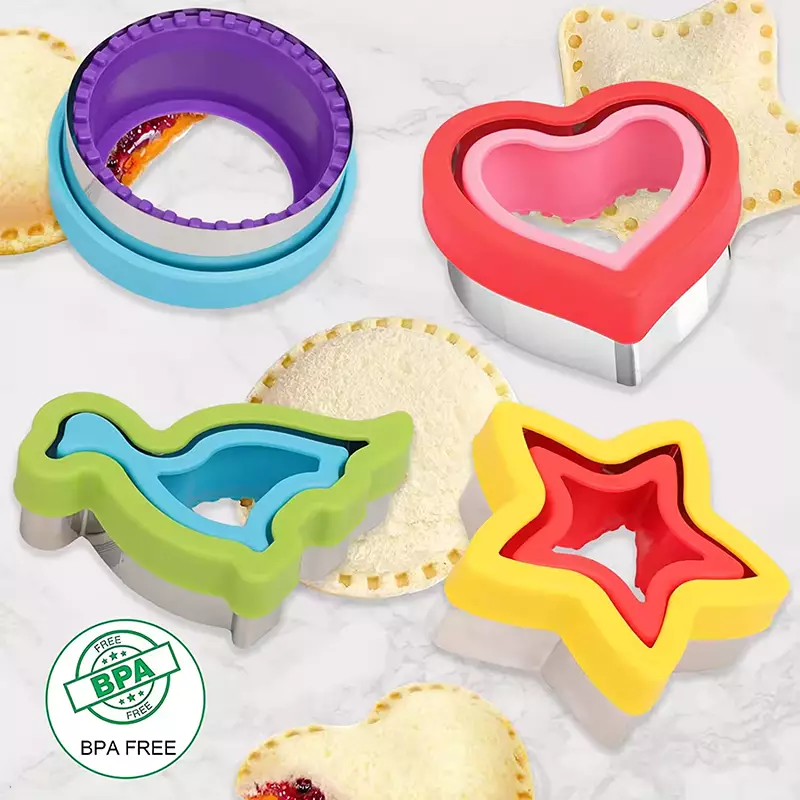 Σετ κόφτης Τοστ και ζύμης 4 τεμάχια για να δημιουργήσετε όμορφες μπουκιές για το παιδί σας. Χρησιμοποιήστε το μεταλλικό κομμάτι για να κόψετε το ψωμί στο σχήμα της επιλογής σας. Με το πλαστικό σφραγίστε τη ζύμη.