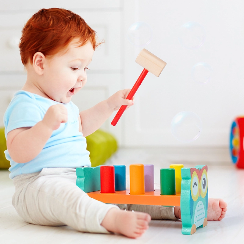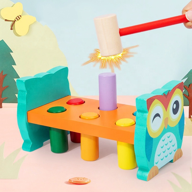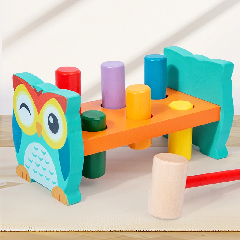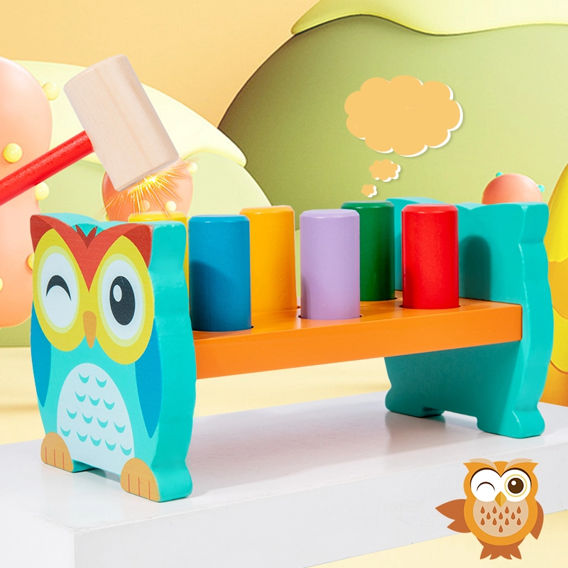 Τα παιδιά χτυπούν τα ξύλα που προεξέχουν, ένα προς ένα, εξασκώντας τις λεπτές κινητικές δεξιότητες και την συγκέντρωση. Μόλις σφυροκοπήσουν όλα τα ξύλα, ο πάγκος μπορεί να γυριστεί ανάποδα για να ξαναπαίξουν, προσφέροντας ατελείωτες ώρες διασκέδασης και μάθησης.