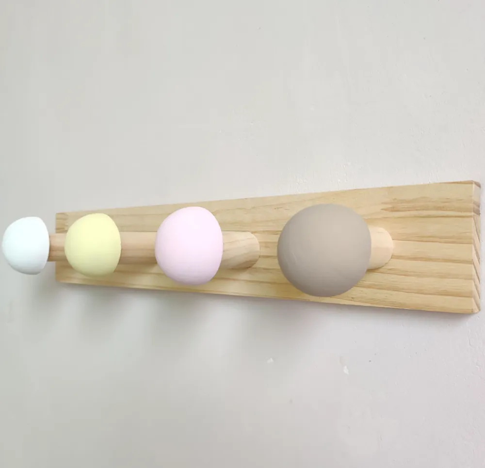 Minimal και κομψή ξύλινη κρεμάστρα τοίχου με στρογγυλά άγκιστρα.