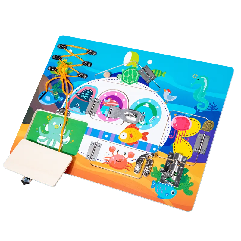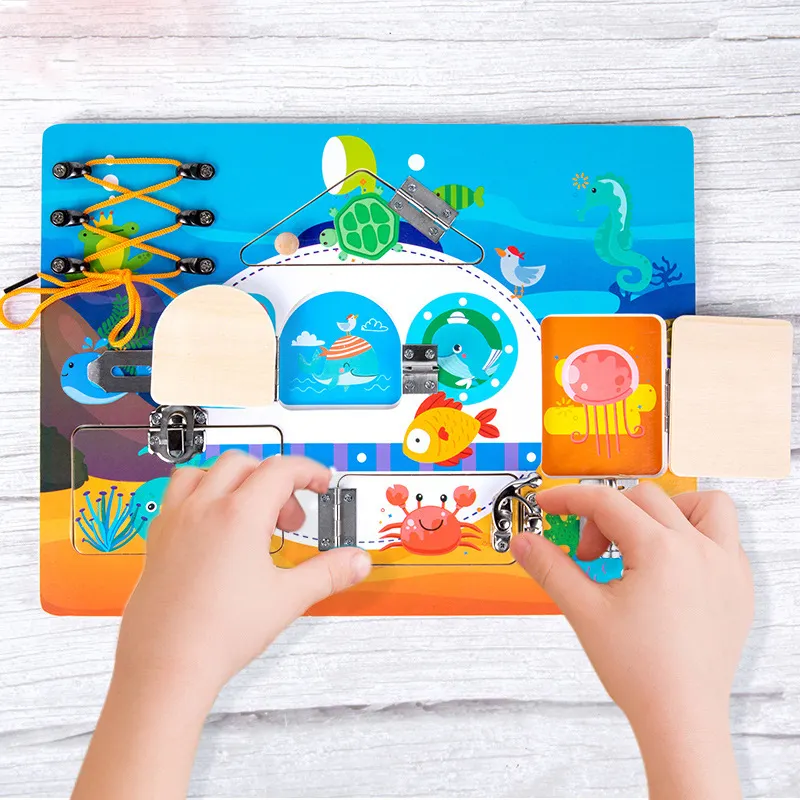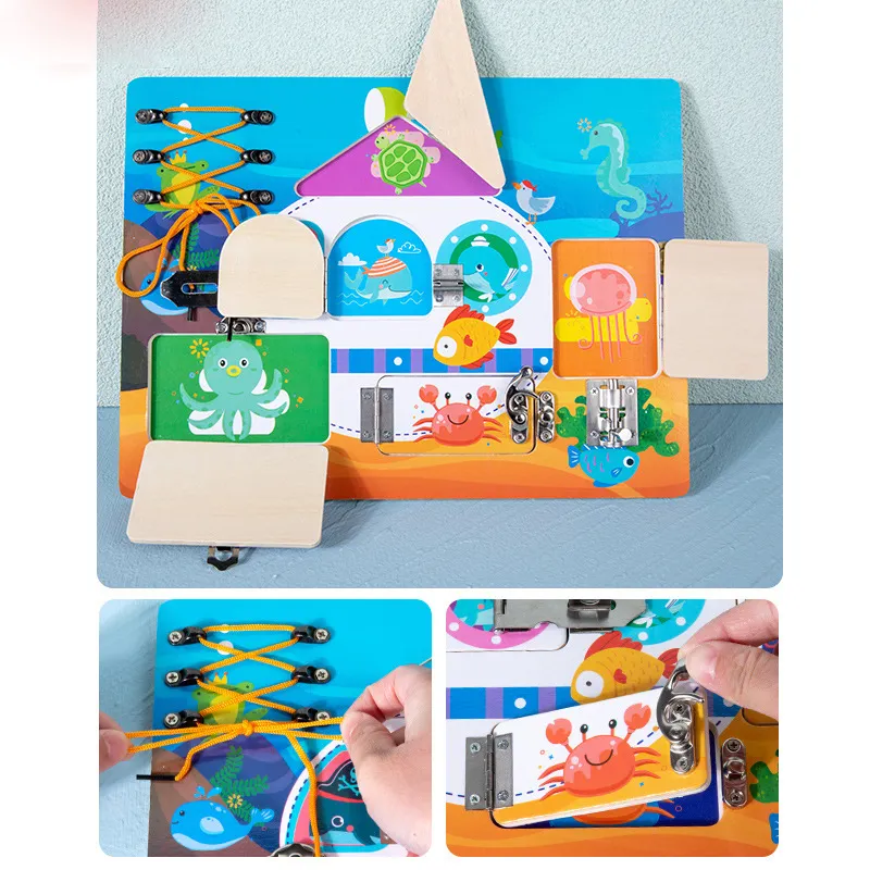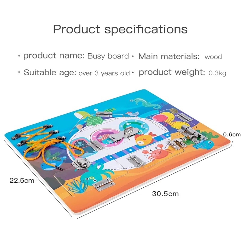 Ξύλινος πίνακας δραστηριοτήτων, ιδανικός για να κρατήσει το παιδί απασχολημένο, καθώς εξασκεί νέες δεξιότητες. Βασίζεται στις αρχές της Μοντεσσοριανής μεθόδου μάθησης, όπου ταυτόχρονα, το παιδί μαθαίνει και διεγείρει την περιέργεια του, διασκεδάζοντας. Το παιδί μαθαίνει να επιλύει δυσκολίες της καθημερινότητας του, όπως το να ανοίξει μια κλειδαριά ή να δέσει τα κορδόνια του, με διασκεδαστικό τρόπο. Ιδανικό για να το παίρνετε παντού μαζί σας, όπως το αυτοκίνητο, τη βόλτα…