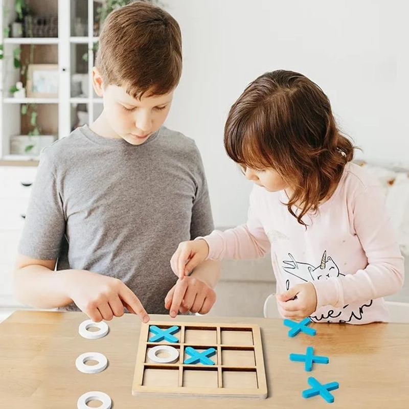 Ξύλινος πίνακας παιχνιδιού τρίλιζας. Ένα κλασικό επιτραπέζιο παιχνίδι, που είναι διασκεδαστικό τόσο για τους ενήλικες όσο και για τα παιδιά. Μπορείτε να το πάρετε μαζί σας όπου κι αν πάτε, λόγω του βολικού μεγέθους του παιχνιδιού.